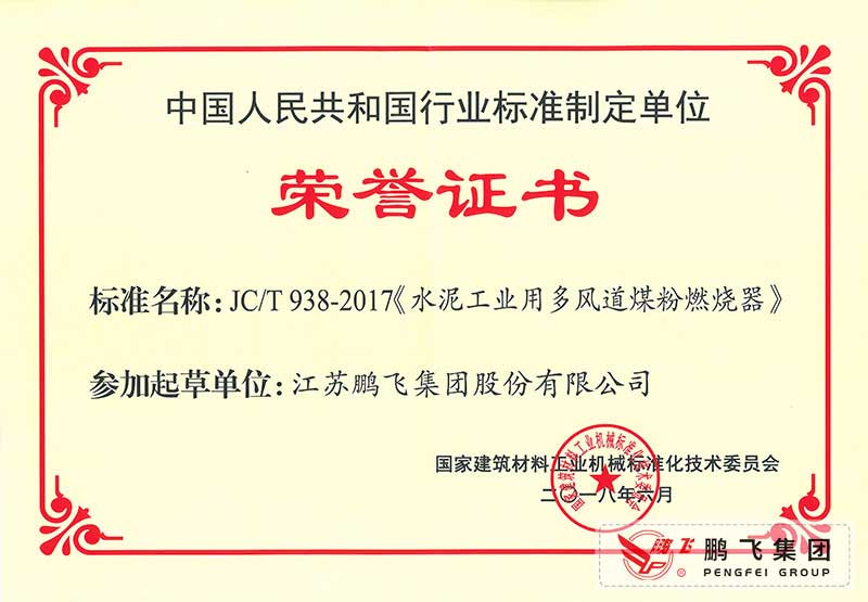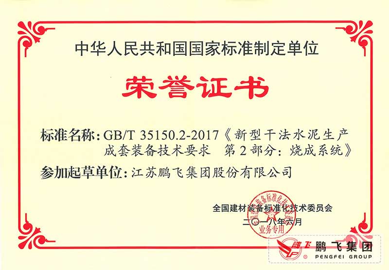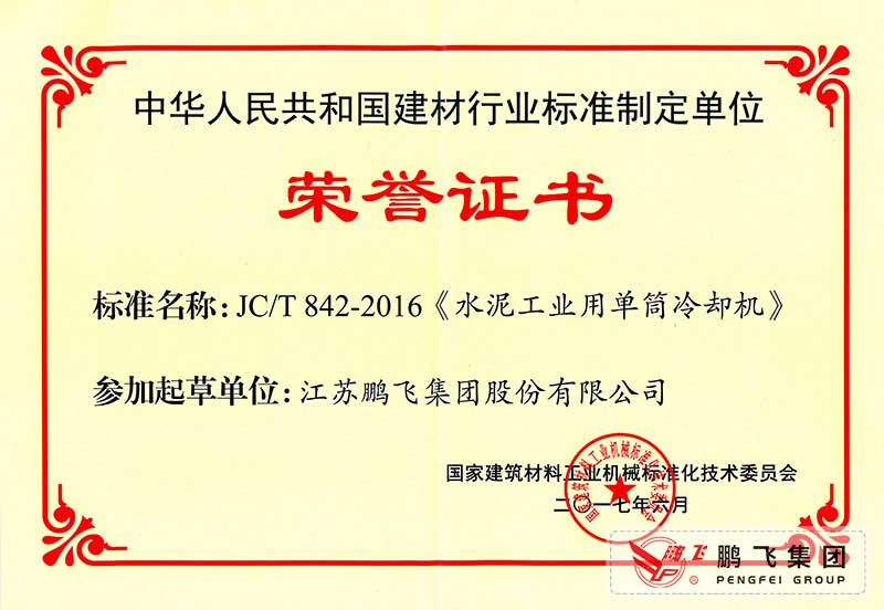 (2017年6月21)回轉(zhuǎn)窯國(guó)標(biāo)起草證書(shū)
