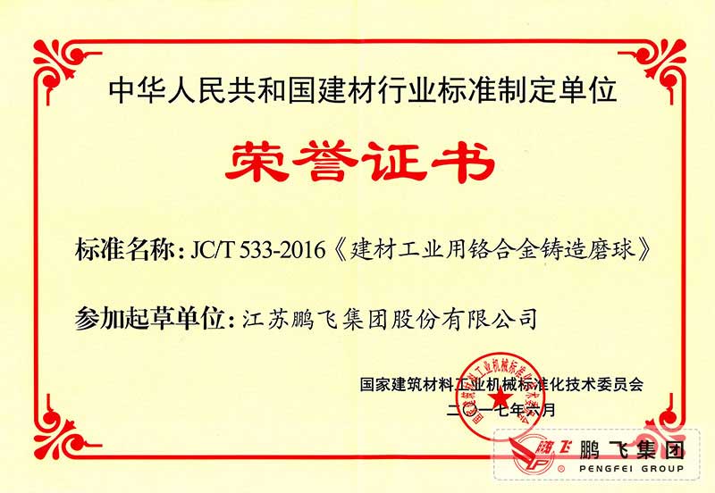 (2017年6月21)鉻合金鑄造球磨行標(biāo)起草證書(shū)