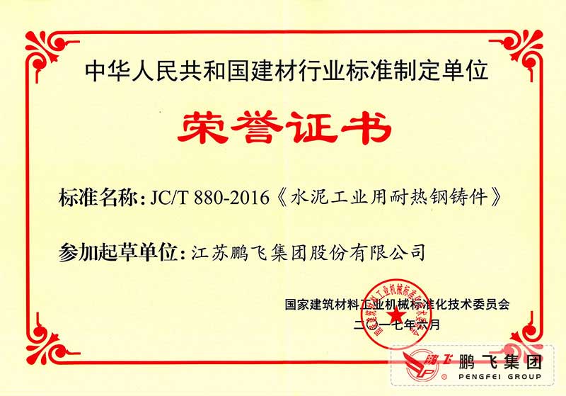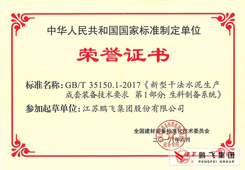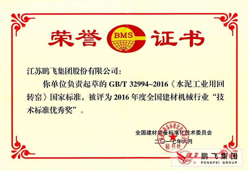 (2017年6月21)回轉(zhuǎn)窯國(guó)標(biāo)起草證書(shū)技術(shù)標(biāo)準(zhǔn)優(yōu)秀獎(jiǎng)