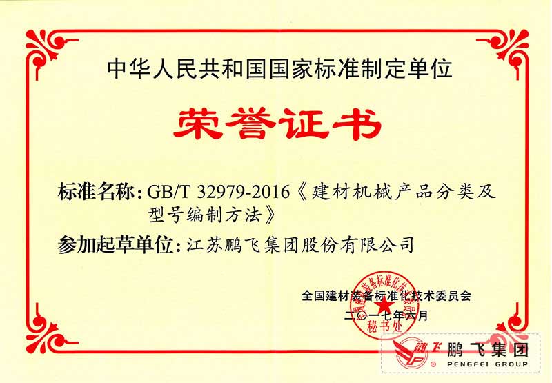 (2017年6月21)建材機(jī)械產(chǎn)品分類及型號(hào)編制方法國(guó)標(biāo)起草證書(shū)