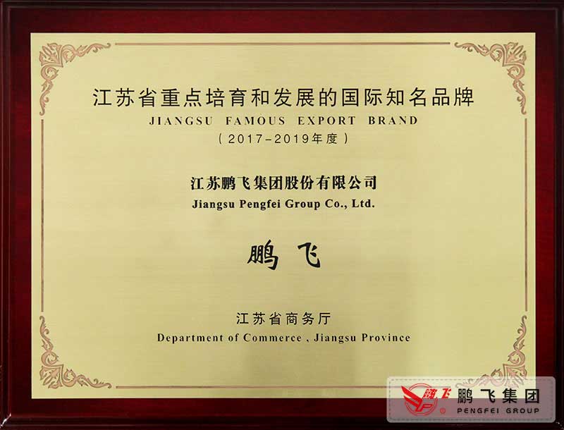 (2018年1月)江蘇省重點(diǎn)培育和發(fā)展的國(guó)際知名品牌獎(jiǎng)牌