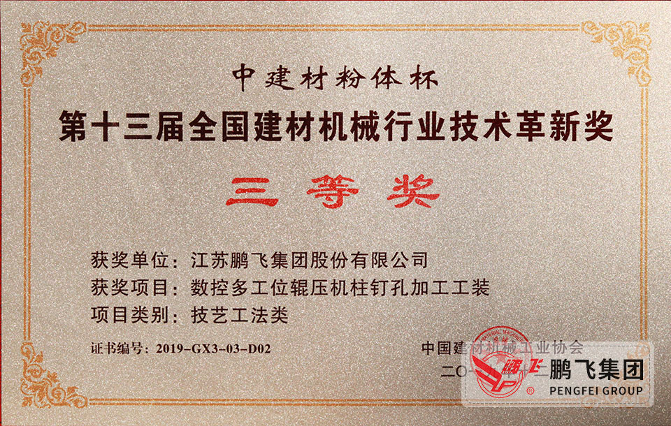 (2019年12月)建材機(jī)械行業(yè)技術(shù)革新獎(jiǎng)3等1