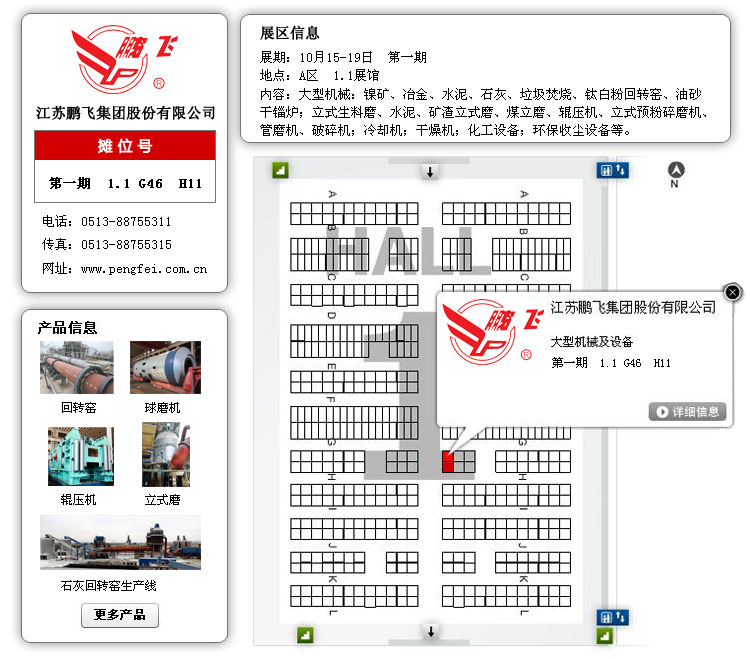 江蘇鵬飛集團(tuán)在廣交會上精心布置展位,印發(fā)各類設(shè)備的介紹手冊,整體模型展示水泥生產(chǎn)線產(chǎn)品,委派具有多年工作經(jīng)驗(yàn)的銷售、技術(shù)、售后等專業(yè)人員為顧客詳細(xì)介紹新產(chǎn)品、新技術(shù),全面分析解答各類設(shè)備從購買到投產(chǎn)使用以及售后服務(wù)等每個環(huán)節(jié)的問題,為您排疑解難,與您達(dá)成共識。同時,也希望能和更多的國內(nèi)外公司加強(qiáng)聯(lián)系,互相合作,為客戶提供更加完美的產(chǎn)品。