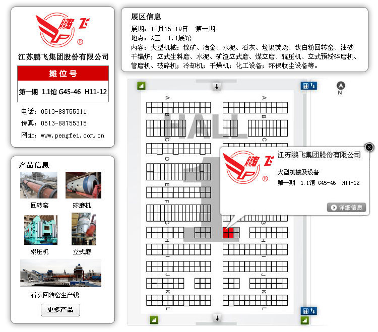 江蘇鵬飛集團(tuán)在第118屆廣交會(huì)上精心布置展位,印發(fā)所產(chǎn)各類成套設(shè)備的介紹手冊(cè),并運(yùn)用全景水泥生產(chǎn)線模型現(xiàn)場(chǎng)演示,委派具有多年工作經(jīng)驗(yàn)的銷售、技術(shù)、售后等專業(yè)工作人員為顧客詳細(xì)介紹新產(chǎn)品、新技術(shù),全面分析解答各類設(shè)備從購(gòu)買到投產(chǎn)使用以及售后服務(wù)等每個(gè)環(huán)節(jié)的問題,為您排疑解難,與您達(dá)成共識(shí)。同時(shí),也希望能和更多的國(guó)內(nèi)外公司加強(qiáng)聯(lián)系,互相合作,為客戶提供更加完美的產(chǎn)品。