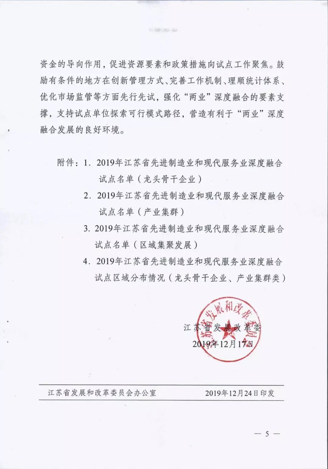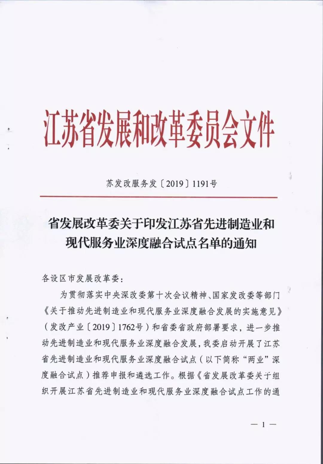 為貫徹落實中央深改委第十次會議精神、國家發(fā)改委等部門《關于推動先進制造業(yè)和現(xiàn)代服務業(yè)深度融合發(fā)展的實施意見》(發(fā)改產(chǎn)業(yè)〔2019〕1762號)和省委省政府部署要求,進一步推動先進制造業(yè)和現(xiàn)代服務業(yè)深度融合發(fā)展,我省啟動開展了江蘇省先進制造業(yè)和現(xiàn)代服務業(yè)深度融合試點推薦申報和遴選工作。根據(jù)《省發(fā)展改革委關于組織開展江蘇省先進制造業(yè)和現(xiàn)代服務業(yè)深度融合試點工作的通知》(蘇發(fā)改服務發(fā)〔2019〕851號)要求,在各地申報的基礎上研究確定123家龍頭骨干企業(yè)、21家產(chǎn)業(yè)集群和15家集聚區(qū)域作為首批“兩業(yè)”深度融合試點單位。我市江蘇鵬飛集團股份有限公司大型成套裝備總集成總承包融合試點、鑫緣繭絲綢集團股份有限公司繭絲綢全產(chǎn)業(yè)鏈產(chǎn)品生命周期管理融合試點、中國天楹股份有限公司智慧城市環(huán)境管理系統(tǒng)應用總集成總承包融合試點共三家企業(yè)入選試點名單。