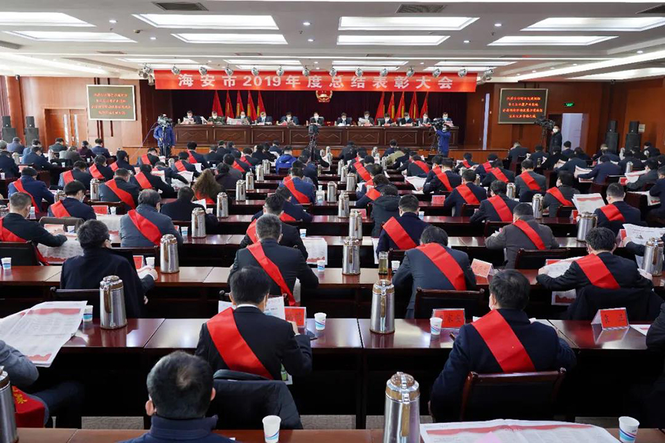 3月14日上午,海安市召開(kāi)2019年度總結(jié)表彰大會(huì),表彰全市各條戰(zhàn)線涌現(xiàn)的先進(jìn)單位和個(gè)人,由于受新型冠狀肺炎疫情的影響,會(huì)議實(shí)施一人一桌簡(jiǎn)便召開(kāi)。會(huì)議設(shè)主會(huì)場(chǎng)和分會(huì)場(chǎng),由海安融媒體中心進(jìn)行現(xiàn)場(chǎng)直播。市四套班子全體負(fù)責(zé)人,各區(qū)鎮(zhèn)、各部門(mén)主要負(fù)責(zé)人、受表彰對(duì)象代表出席會(huì)議。獲獎(jiǎng)單位分別上臺(tái)領(lǐng)獎(jiǎng),顧國(guó)標(biāo)書(shū)記做了重要講話。鵬飛集團(tuán)榮獲海安市委、市政府授予的杰出貢獻(xiàn)獎(jiǎng)、工業(yè)百?gòu)?qiáng)企業(yè)、開(kāi)放型經(jīng)濟(jì)先進(jìn)企業(yè)、海安市市長(zhǎng)質(zhì)量獎(jiǎng)、王家安董事長(zhǎng)當(dāng)選六星級(jí)企業(yè)家。