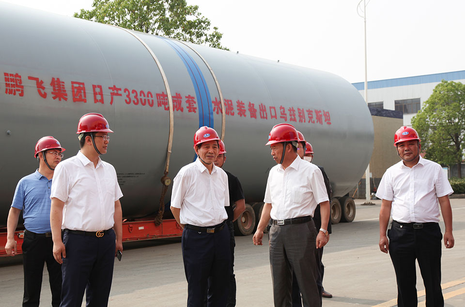 喬會(huì)長(zhǎng)一行參觀了鵬飛集團(tuán)回轉(zhuǎn)窯設(shè)備生產(chǎn)基地、公司產(chǎn)品形象展示廳,鵬飛集團(tuán)董事長(zhǎng)王家安從加強(qiáng)疫情防控恢復(fù)生產(chǎn),做好新技術(shù)裝備研發(fā),加快走出去步伐,實(shí)施服務(wù)型制造三個(gè)方面向喬會(huì)長(zhǎng)做了情況匯報(bào)。