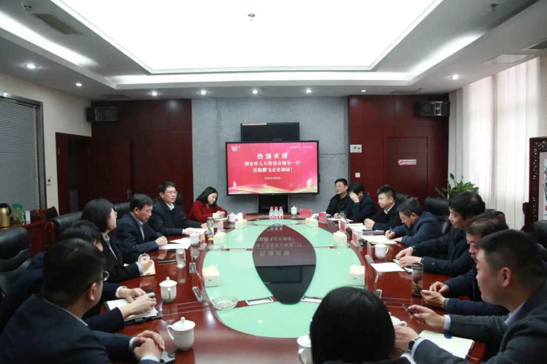 3月4日下午,市人大常委會(huì)副主任張忠宏、市人大常委會(huì)財(cái)政經(jīng)濟(jì)工作委員會(huì)主任錢祥健、市人大常委會(huì)專職委員徐瀧,發(fā)改委、行政審批局和生態(tài)環(huán)境局分管負(fù)責(zé)人一行到江蘇鵬飛集團(tuán)調(diào)研。大公鎮(zhèn)黨委書(shū)記金山存,黨委副書(shū)記、鎮(zhèn)長(zhǎng)魯競(jìng),鎮(zhèn)人大主席何雋,副鎮(zhèn)長(zhǎng)曹陽(yáng),江蘇鵬飛集團(tuán)董事長(zhǎng)王家安等參加會(huì)議。