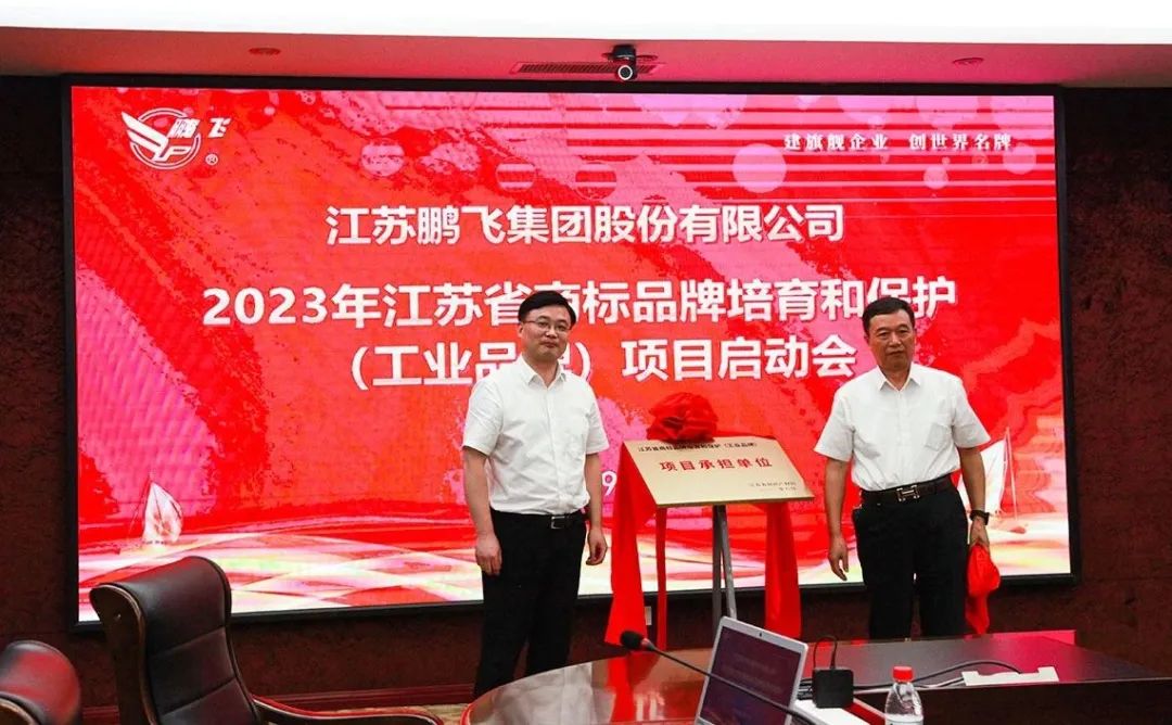 江蘇鵬飛集團承擔2023'江蘇省商標品牌培育和保護(工業(yè)品牌)項目,為推動該項目的實施,9月1日下午,鵬飛集團主持召開項目啟動會,南通市市場監(jiān)督管理局副局長蔣愛龍、知識產(chǎn)權(quán)服務處處長吳欣、知識產(chǎn)權(quán)保護處處長曹曉青,海安市市場監(jiān)督管理局局長余星星、副局長蔣克榮、知識產(chǎn)權(quán)科科長張福高,鵬飛集團黨委書記、董事長王家安,副總施鵬宇、賁道林以及公司品牌管理部等相關(guān)人員參加此次活動。