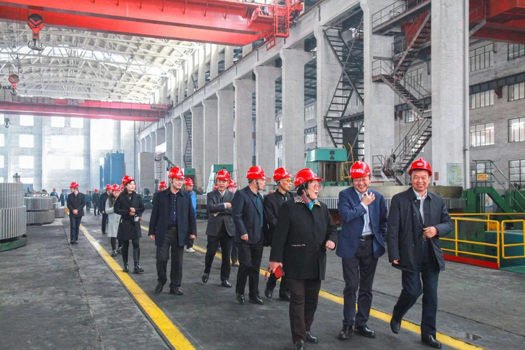 與會(huì)代表在董事長(zhǎng)王家安,副總經(jīng)理周銀標(biāo)、賁道林等陪同下,參觀(guān)了鵬飛集團(tuán)回轉(zhuǎn)窯生產(chǎn)車(chē)間、質(zhì)量控制中心、節(jié)能儲(chǔ)能新技術(shù)產(chǎn)業(yè)研究院及鵬飛展示廳、黨建工作室、王家安勞模工作室。