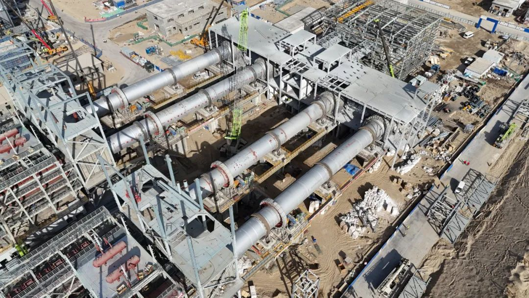 鵬飛集團(tuán)生產(chǎn)的Φ4.6x63m(4臺套)回轉(zhuǎn)窯在新疆火燒云項(xiàng)目使用現(xiàn)場