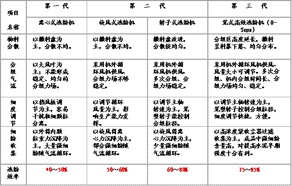 (一)三代選粉機(jī)的主要結(jié)構(gòu)性能比較