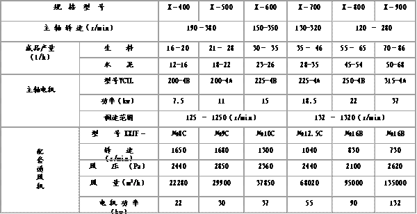 部分國(guó)產(chǎn)轉(zhuǎn)子選粉機(jī)的技術(shù)參數(shù)