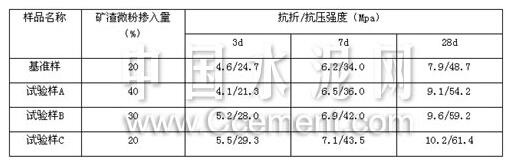 隨著高性能混凝土技術(shù)的發(fā)展與應(yīng)用,礦渣微粉已成為混凝土制備中不可或缺的第六組分材料(人工礦物摻合料)。粒化高爐礦渣系冶煉生鐵時(shí)排出的工業(yè)廢渣,每生產(chǎn)一噸生鐵,大約排出300~1000kg礦渣,其礦物成份在Cao-Sio2-Al2o3三元相圖中處于C2AS、CAS2、CS、C2S結(jié)晶區(qū),大致化學(xué)成份為CaO34~46%、SiO222~40%、Al2O35~15、MgO2~13%,并含有少量FeO、MnO、S及TiO2和金屬鐵。礦渣出爐時(shí)經(jīng)水淬急冷,保留了微晶態(tài)的高活性玻璃體結(jié)構(gòu),其有較高的潛在物理化學(xué)活性,在含有硫、堿成份的水化環(huán)境中可激發(fā)出良好的水硬活性(如前蘇聯(lián)研究的堿-礦渣高強(qiáng)水泥屬此類),可將礦渣看作是一種經(jīng)過(guò)高溫煅燒的高硅、低鈣熟料。礦渣采用機(jī)械力活化,磨細(xì)制得的微米級(jí)粉體,具有潛在水硬性礦物的晶格產(chǎn)生畸變,發(fā)揮出優(yōu)良的水化膠凝活性。磨細(xì)礦渣微粉摻入水泥中的強(qiáng)度試驗(yàn)結(jié)果見(jiàn)表6: