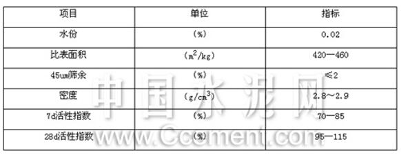 2/kg時(shí),立磨臺(tái)時(shí)產(chǎn)量達(dá)52t/h,系統(tǒng)電耗為37.3kWh/t,制備的礦渣微粉性能見(jiàn)表8:
