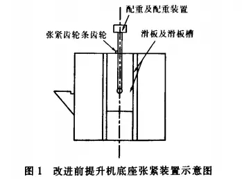 我公司有一臺(tái)運(yùn)載能力較大的提升機(jī),曾出現(xiàn)因跑偏無(wú)法調(diào)整的情況。經(jīng)仔細(xì)研究分析各種跑偏情況的可能性,將內(nèi)部的皮帶畚斗等全部拆卸下來(lái),測(cè)量上下滾筒的平行度、同面度,測(cè)量提升機(jī)的箱體垂直度,檢查滾筒的磨損情況和下滾筒的平衡情況,以及皮帶老化情況,都沒(méi)有解決問(wèn)題。后來(lái)通過(guò)改進(jìn)底座的配重調(diào)節(jié)裝置解決了問(wèn)題。到目前為止,連續(xù)使用了3年多,效果良好,沒(méi)有出現(xiàn)問(wèn)題。具體措施如下: