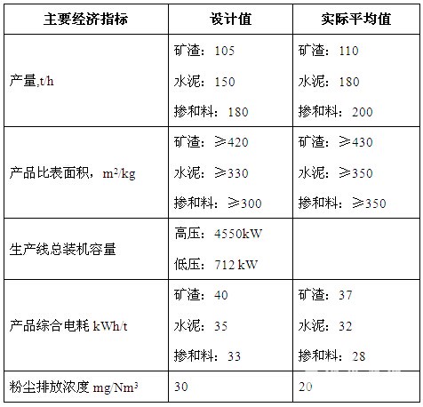 該生產線是按照年產60萬噸礦粉/100萬噸水泥設計,粉磨系統(tǒng)主要設備配置及性能參數(shù)見表1: