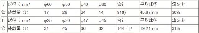 表1 球磨機設備廠家提供的鋼球級配