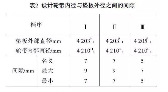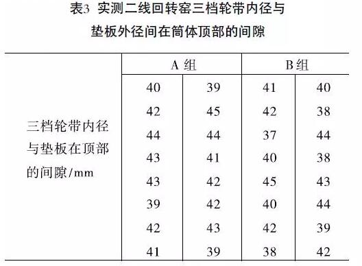 我們對2線三檔輪帶內徑與墊板外徑在筒體頂部的間隙進行測量,測量數(shù)據(jù)見表3
