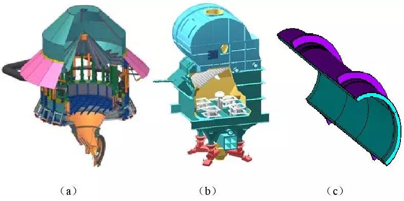 (a)為豎式預(yù)熱器,(b)為豎式冷卻器,(c)為回轉(zhuǎn)窯