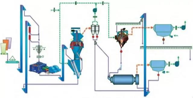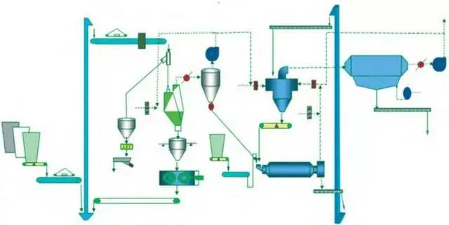 該系統(tǒng)工藝簡(jiǎn)單,設(shè)備少,維護(hù)工作量少,水泥成品全部經(jīng)過(guò)球磨機(jī)粉磨,成品粒度分布較寬,水泥性能穩(wěn)定。