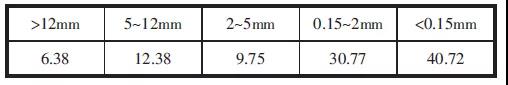 2)將輥壓機喂料裝置通過口增大到1500mm×330mm,恢復(fù)兩側(cè)饋入板(見圖2),保證過飽和喂料,出輥壓機物料成品量<2mm顆粒占71.49%。其粒度分布見表1。