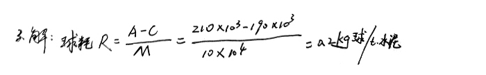 3、一臺磨機第一次裝入研磨體的質量是210t,中間無補球,經過粉磨10萬噸水泥后清倉,清倉后研磨體的總質量為190t(不含碎球和過小的球),求該種研磨體球耗。