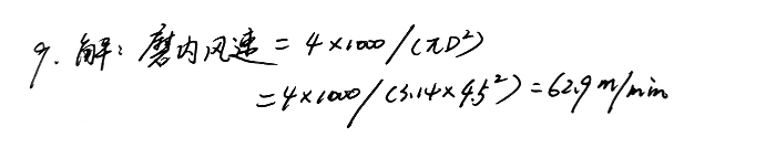 9、某廠水泥磨的通風量為1000m3/min,磨機規(guī)格為φ4.5*15m,試計算磨內的風速大約是多少?