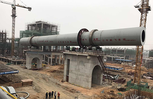 轉(zhuǎn)化焙燒:鋰輝石精礦從精礦庫人工送至斗式提升機(jī)提升至精礦倉,再經(jīng)圓盤給料機(jī)和螺旋給料機(jī)加入碳酸鋰回轉(zhuǎn)窯窯尾,利用窯尾預(yù)熱段高溫氣體干燥精礦,精礦在煅燒段約1200℃左右的溫度下進(jìn)行晶型轉(zhuǎn)化焙燒,由α型(單斜晶系,密度3150kg/m3)轉(zhuǎn)化為β型鋰輝石(四方晶系,密度2400kg/m3,即焙料),轉(zhuǎn)化率約98%。